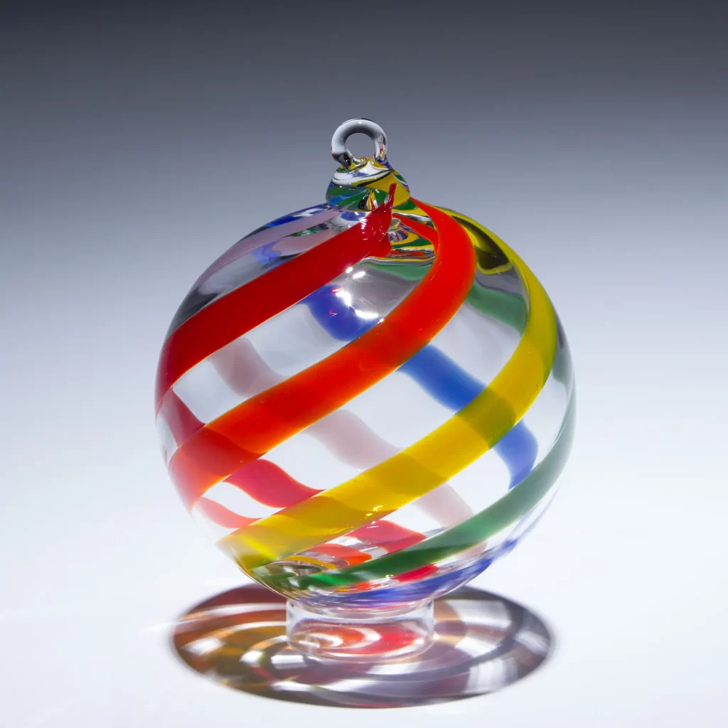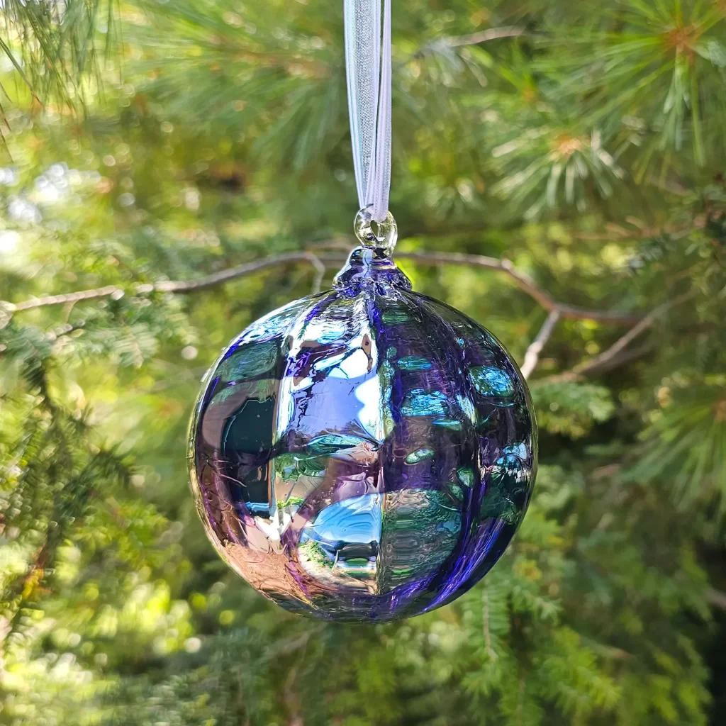 Our 2024 ornament of the year was Violetta. Named after the tragic heroine in Verdi’s opera La Traviata, Violetta’s rich purple hues are offset by silver-blue accents and regal ribbing.