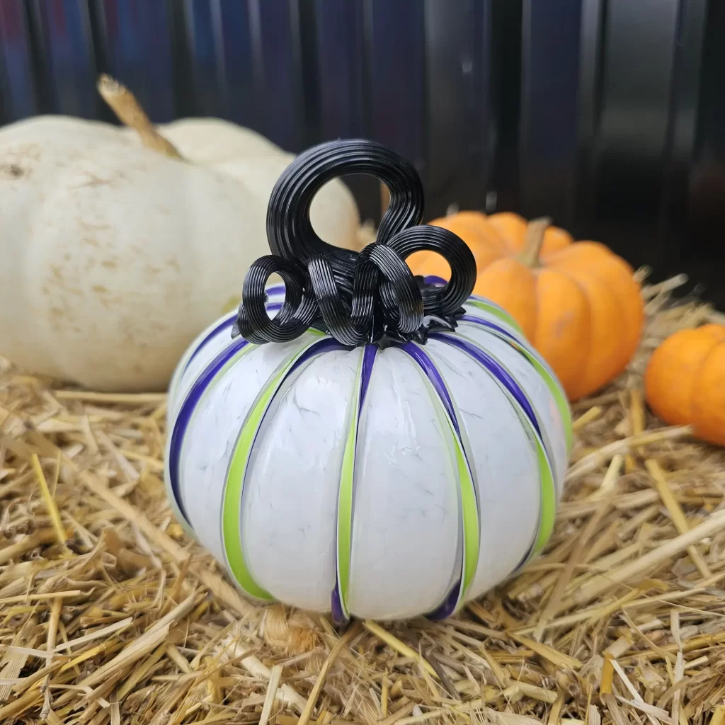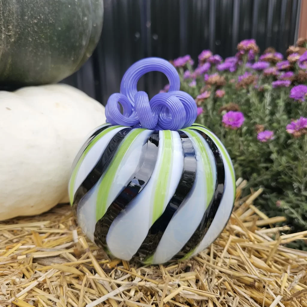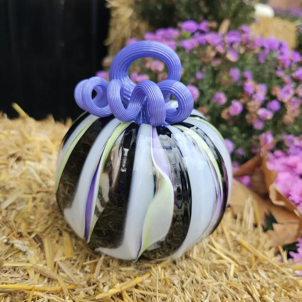 Our Party Gras pumpkin is still a social media darling. We reposted the video of us making this sweet beauty and we got another million views and tens of thousands of likes. We love this pumpkin design and it feels good to know that others do too! We also released two new dichroic glass pumpkin designs to go along with Party Gras; Persephone, and Starlight.