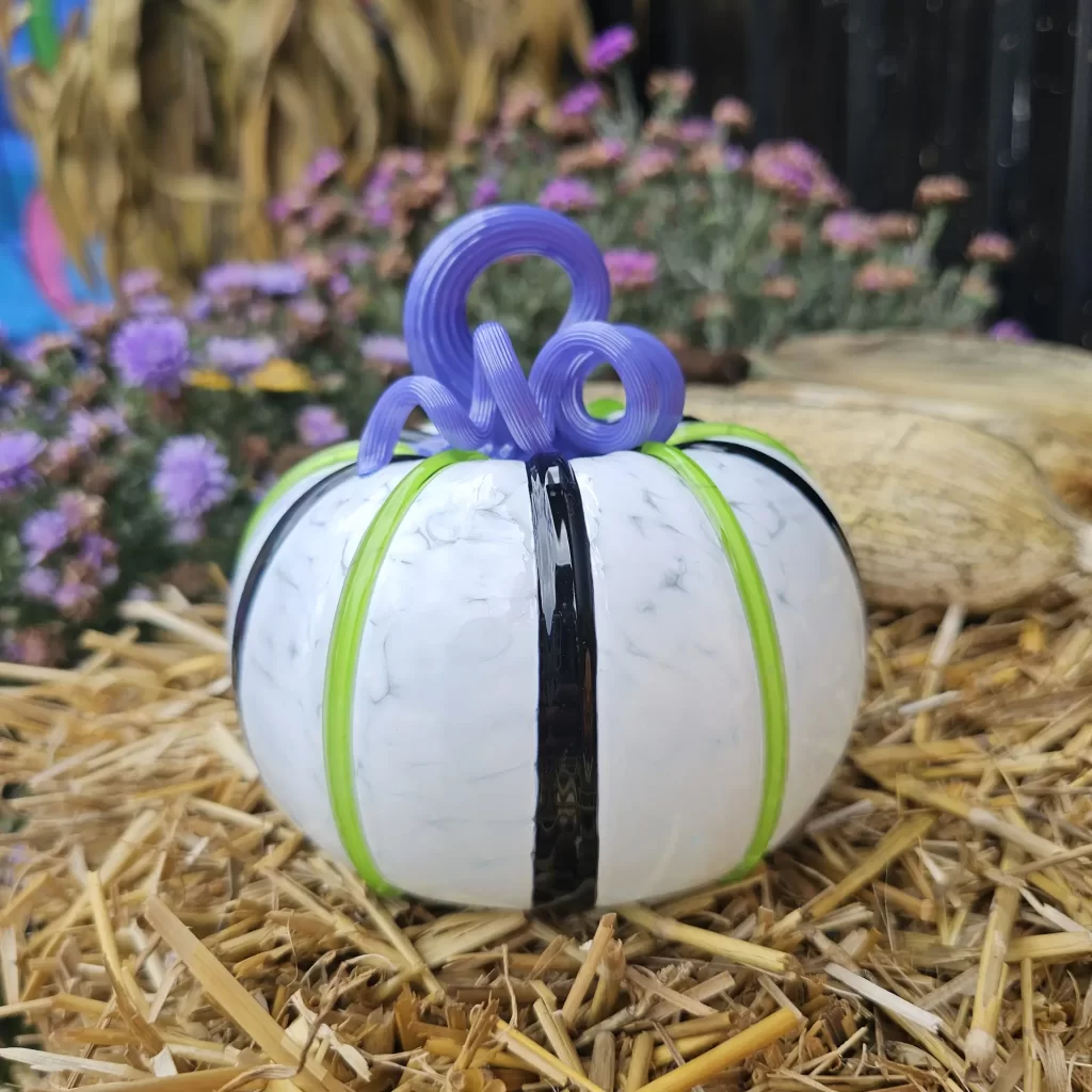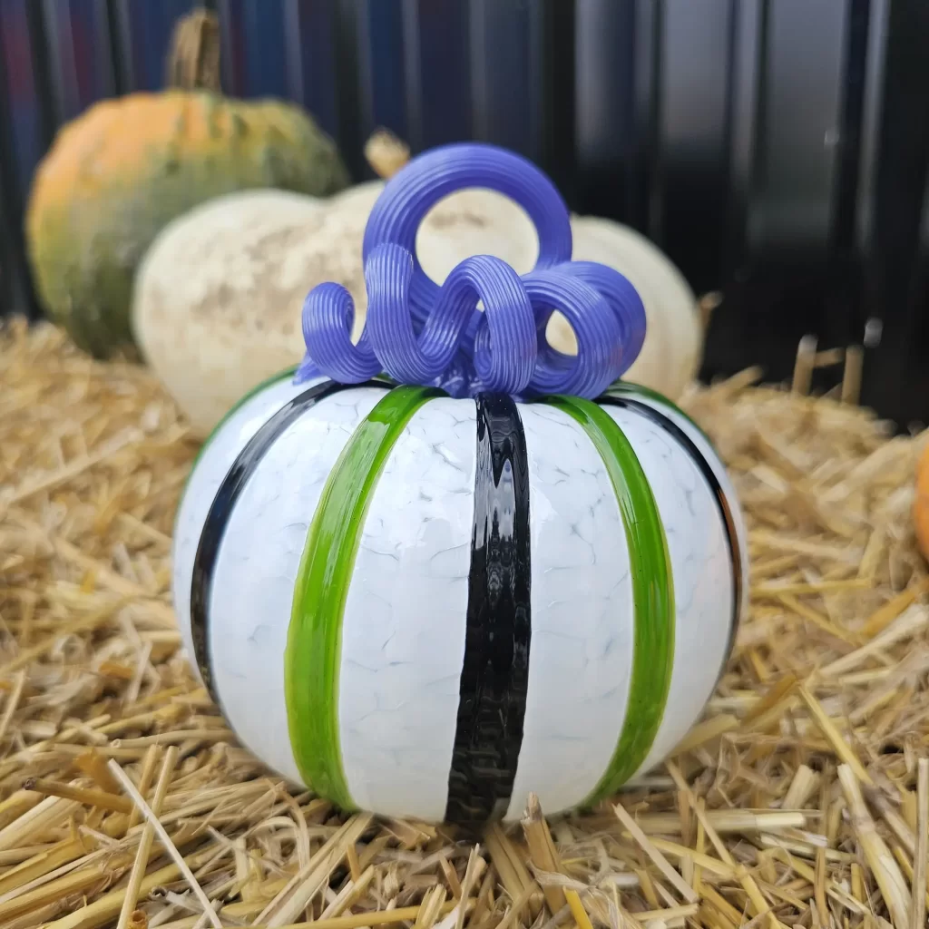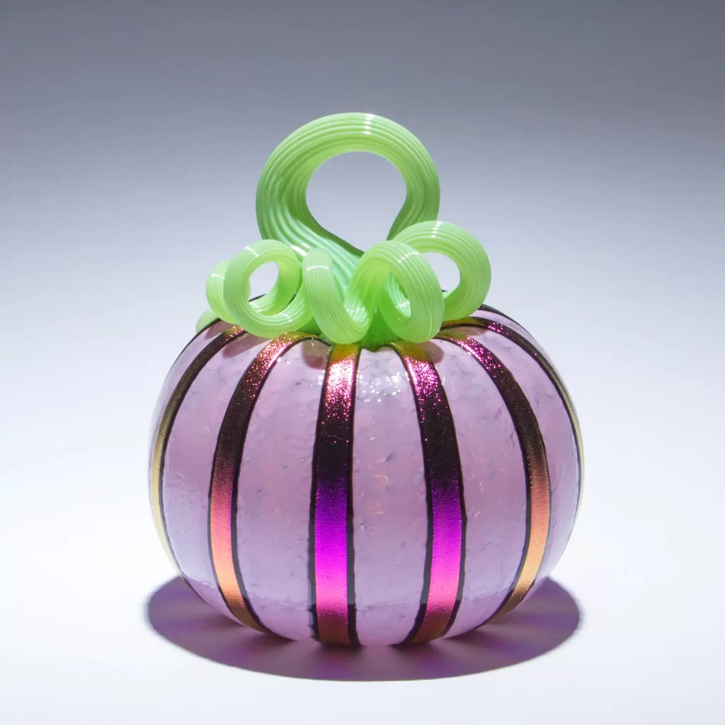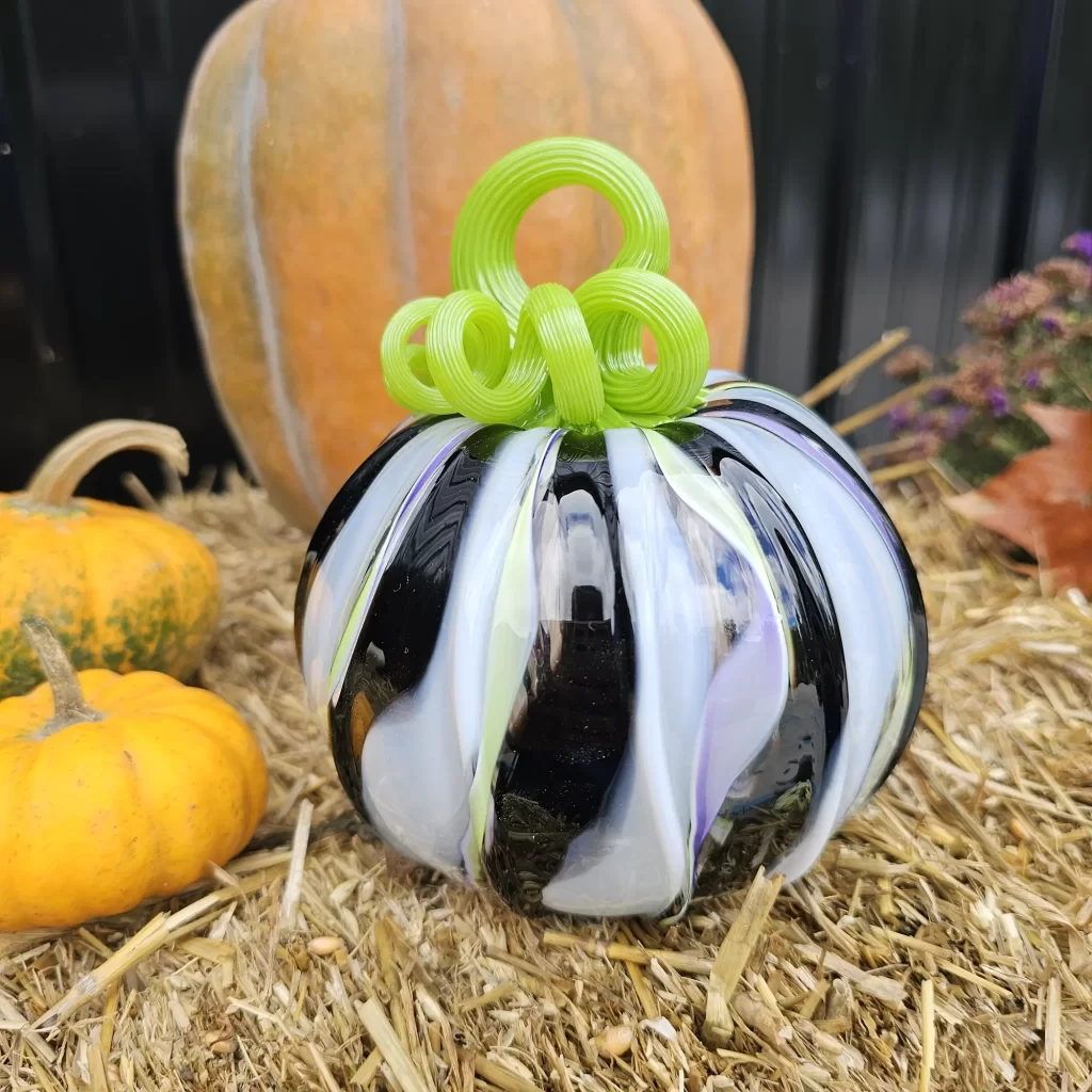 Our Party Gras pumpkin is still a social media darling. We reposted the video of us making this sweet beauty and we got another million views and tens of thousands of likes. We love this pumpkin design and it feels good to know that others do too! We also released two new dichroic glass pumpkin designs to go along with Party Gras; Persephone, and Starlight.