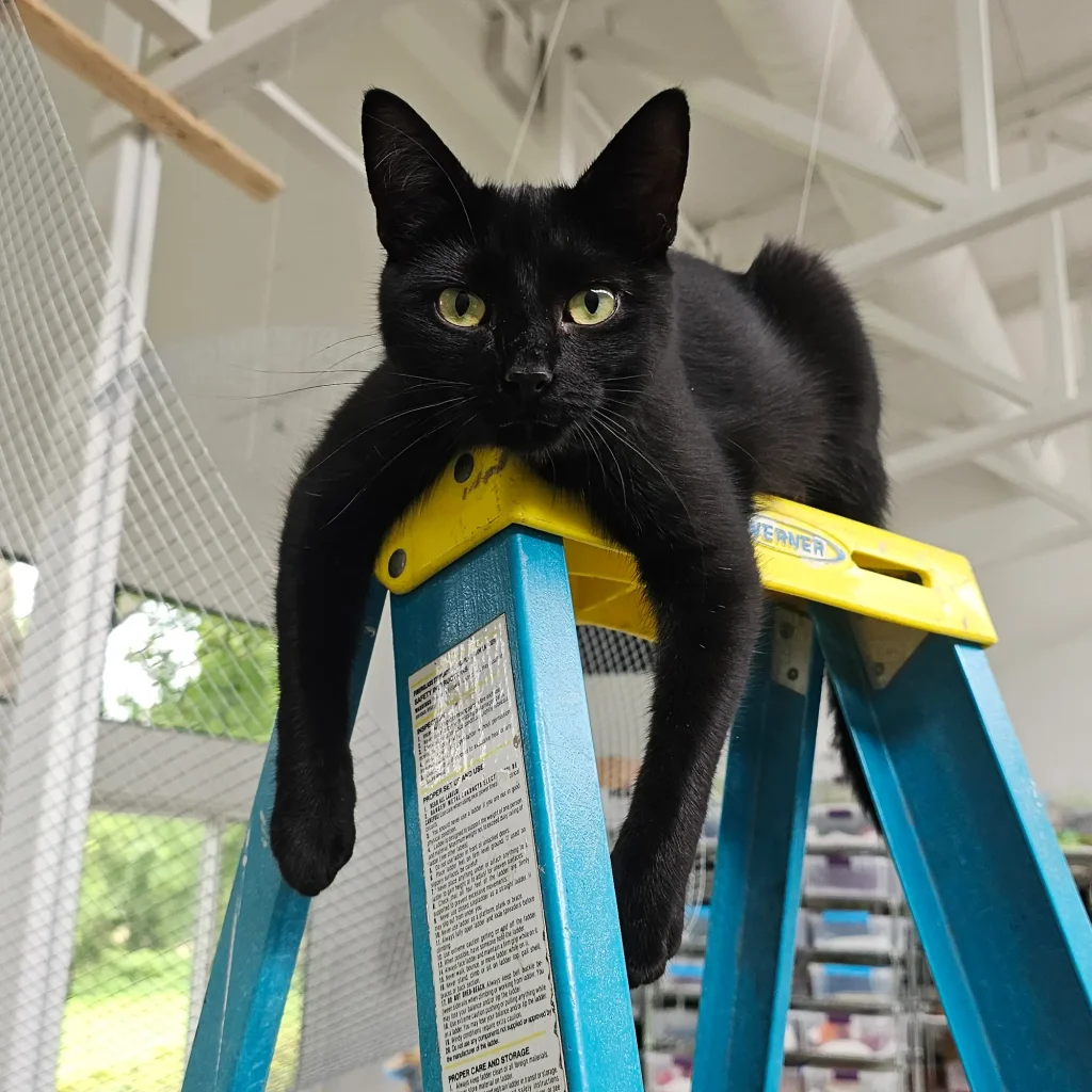 Our studio has been home to a colony of feral cats for the last 8 years. In November 2023 we lost our studio mascot, Jack White (read his story here). He was survived by his partner, MK, and sister, Winnie but the master cat distribution system knew we had cat-capacity. And that’s when the newest troublemaker, Artemis Paulina Rose showed up. Just a sweet baby of 12 weeks in January 2024, she quickly turned into a spicy monster terrorist who loves to climb ladders and chatter at the birds. Having these 3 ladies together keeps us on our toes, but we wouldn’t have it any other way.