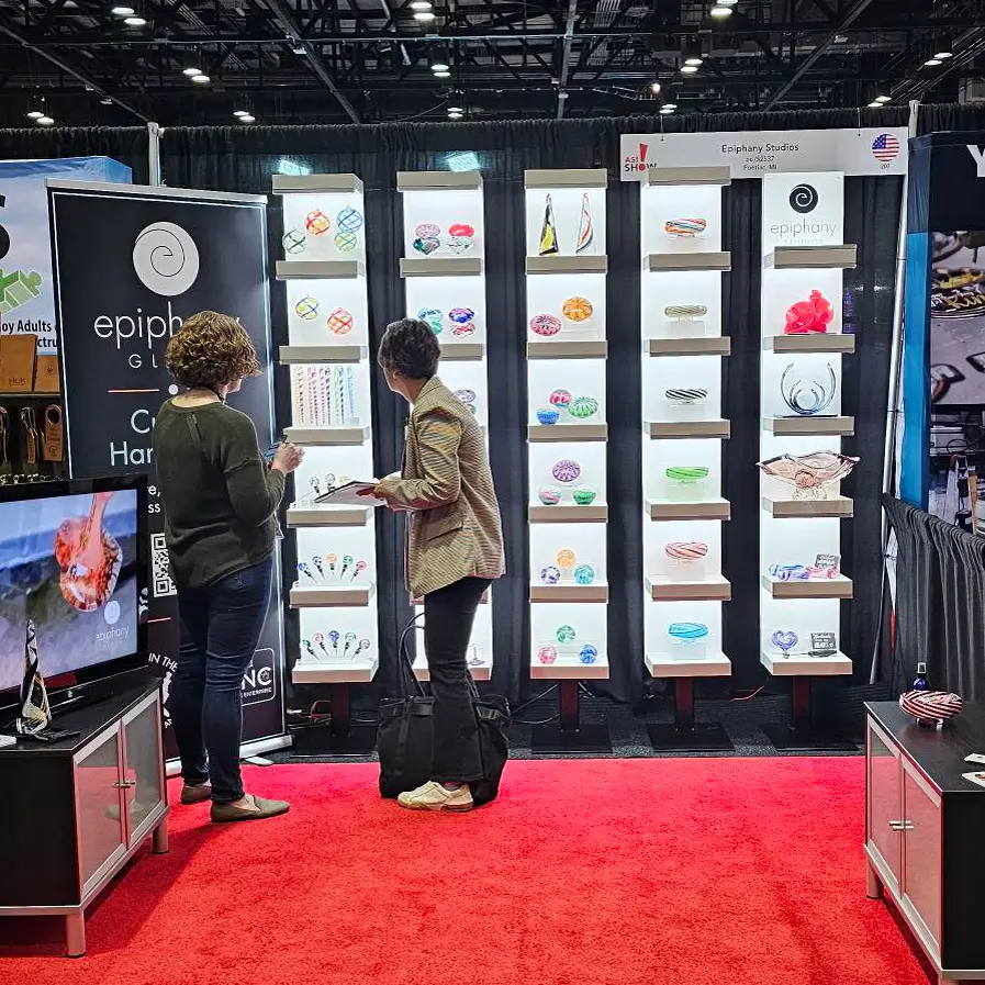We spent the month on the road doing trade shows and visiting clients. While we love it when people come to the studio, we also have to get out there and show off our stuff. From Florida to Atlanta we were all over. You can’t blow glass from the road, so we divided and conquered. Never is it more true than during the tradeshow season that it takes a village to run a glass studio.