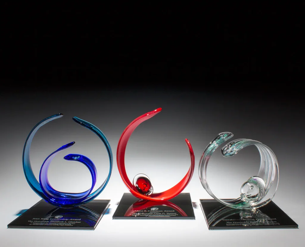 We are a Certified Woman-Owned glass studio and we are part of the Great Lakes Women’s Business Council. We were honored this year to create their annual awards, as well as creating awards for other large organizations around the globe. From matching colors to creating unique shapes, we offer fully customizable solutions for every budget. Want to see more? Visit our Corporate Awards page.