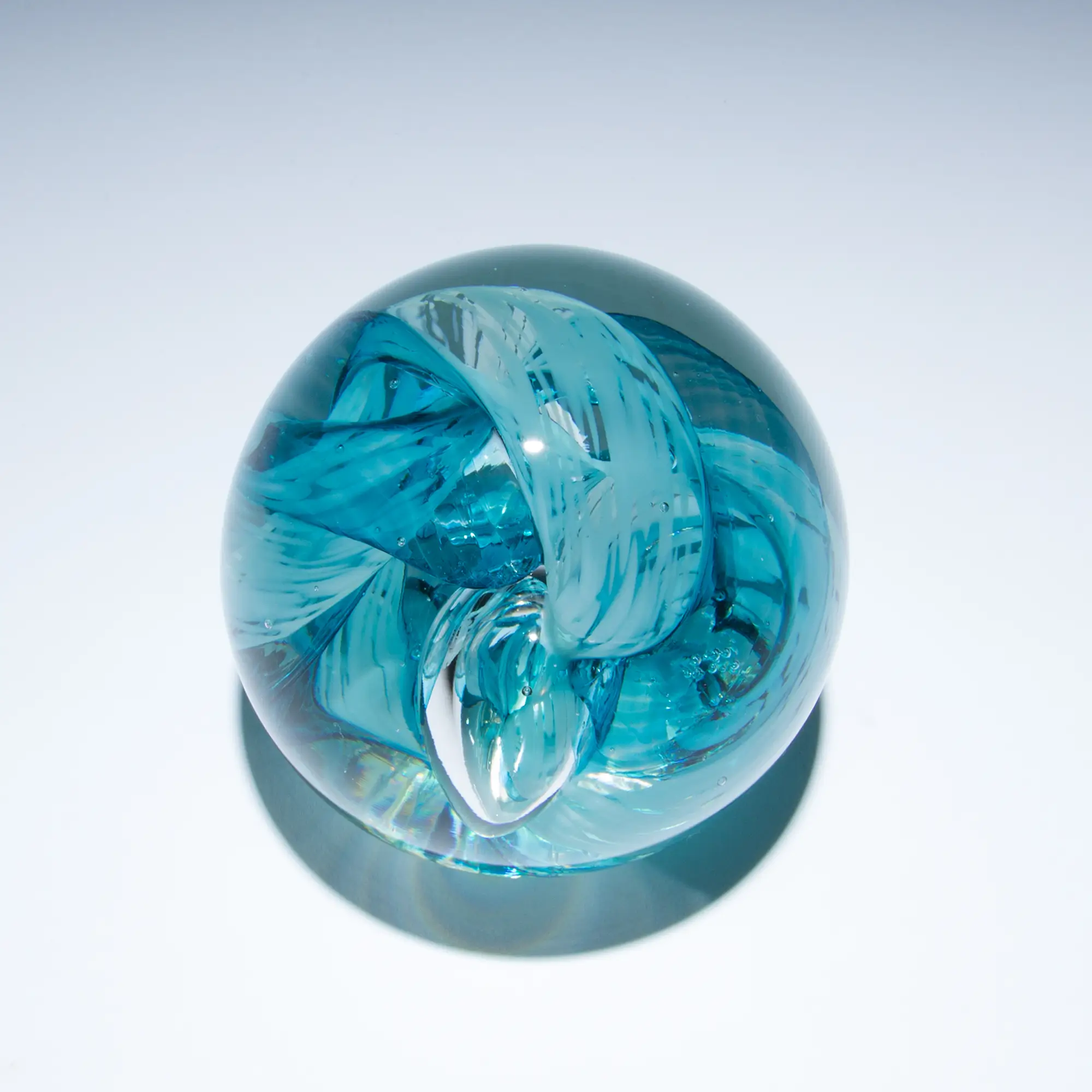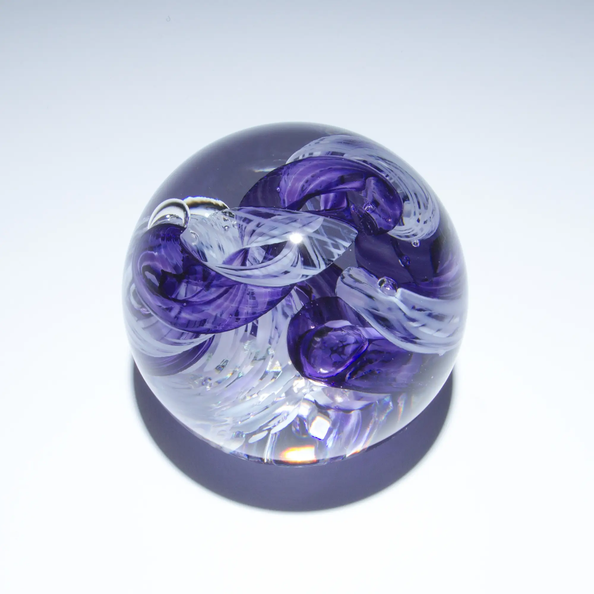 Created using 2000-degree molten glass by our amazing studio artists with superior craftsmanship and attention to detail. Years of training go into perfecting how to use glass color in paperweights. These artworks are made from the inside out. Each is solid hot-sculpted with layers of colors encased in clear glass. We finish the piece by adding a heart stamp on the bottom, as well as signing and dating on the bottom.
